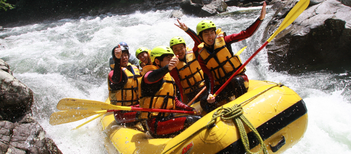 グリーンシーズンの定番アクティビティ 豪快な水しぶきが気持ちいいラフティング