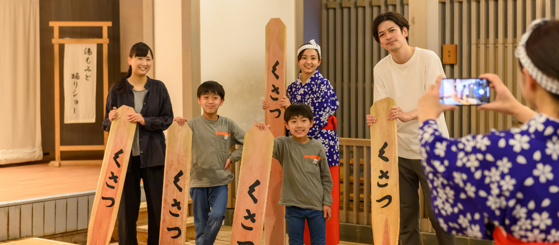 大正ロマン風の建物が存在感を放つ「熱乃湯」では、湯もみガールズたちによる「湯もみと踊り」のショーを毎日開催。また、湯もみガールズたちの指導を受けられる湯もみ体験も行っています。
