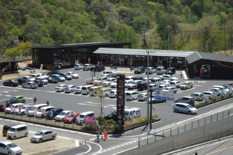 農産物直売所、レストラン、コンビニ、足湯などを完備した「道の駅八ッ場ふるさと館」。
