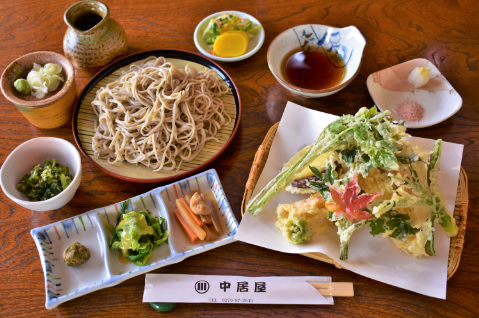 1972年に嬬恋村で創業した、そばや鰻、天ぷらを振る舞う老舗の日本料理店「割烹中居屋」。嬬恋村産のそば粉を用いて作りあげる数量限定の手打ちそばや、地元で採れる季節の山菜の天ぷらを看板メニューに掲げています。