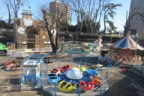 1954年に開園した歴史ある遊園地。白バイや新幹線など10円で乗れる小型遊具と、1回50円で乗れる「メリーゴーラウンド」や「ミニヘリコプター」など、8つの大型遊具があります。大人も一緒に楽しめる「とことこ迷城」1回200円もおススメ!小さな子どもと一緒に安全に遊べるよう、大型遊具は3歳以下の子どもに付き添う大人は無料。お得な回数券も用意しています。