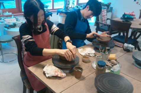 四万温泉のメイン通りにある陶芸工房。作家作品を展示販売しているほか、気軽にできる陶芸体験も受け付けています。プロが指導してくれるので子どもや初心者でも安心。手動ロクロを使った「手びねり体験」では、お皿やマグカップなどを作ることができます。カップルプラン、ファミリープランなどお得なプランも用意しています。出来上がった作品は後日、焼いてから宅配便でお届け。前日までの予約制で「電動ロクロ体験」も受け付けています。