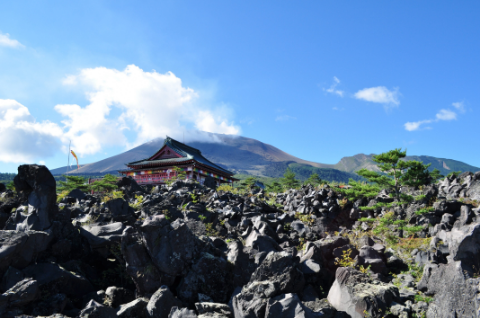 1783年(天明3年)におきた浅間山の大噴火で流れ出た、真っ黒な溶岩石でできた奇勝を見学できる公園です。こんな岩が空から飛んできたのかと驚くほど大きな岩がゴロゴロしており、大自然の驚異を目のあたりにすることができます。園内には表参道、裏参道など散策コースが設定されており、目安の時間も表記されているので、参考にして散策を楽しみましょう。晴れていれば北アルプス連峰や谷川連峰などを一望できます。