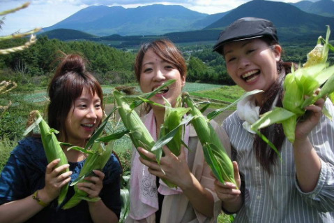 「つまごいパノラマライン」の北ルートは、浅間山を眺めながらキャベツ畑の中を走り抜けることができる人気のドライブスポットです。その途中にあるのが自家製の有機肥料を使い、野菜を育てている「海野わくわく体験農園」です。この農園では、地元農家さんに教わりながら、キャベツ植えつけや大根の種まき、キャベツやとうもろこしの収穫などの農作業が体験ができます。採れたての野菜は新鮮そのもの。汗を流した体験は旅の思い出に。収穫した野菜はお土産として持ち帰ることもできます。(体験メニューは時期によって変わります)