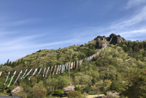 春には道の駅の北側斜面一面に芝桜が咲き、東登山道へ向かう途中にあるお花見広場で、ゆっくり花見を楽しむことができます。また、麓にある親都神社の北側から山の中腹にかけて約100匹の鯉のぼりが大空を泳ぐ姿は、この時期ならではのお楽しみです。