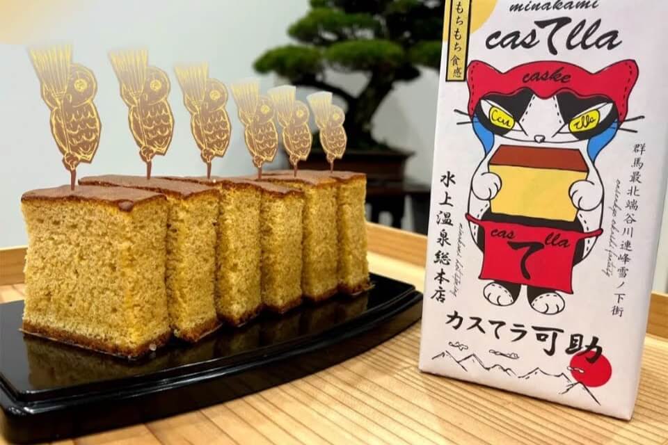 みなかみ町にあるチーズタルト専門店「ジャック・ザ・タルトファンタジー」の敷地内に、2号店としてオープンしたカステラ専門店「カスてラ可助」でお土産を購入!粉や卵などの素材にこだわって作られたカステラは、しっとりもっちりとした食感に、ザラメのシャリシャリ感が絶妙。プレーン、チョコ、抹茶、紅茶の4種類フレーバーがラインナップしています。インパクトのあるイラストが描かれたパッケージも特別感があり、お土産にも喜ばれそう。