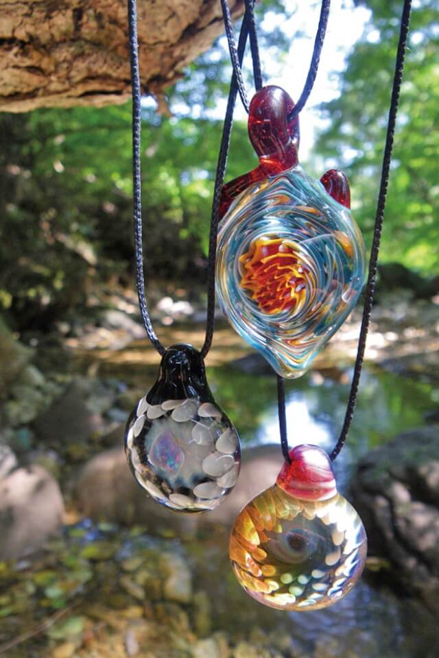 ガラスのネックレス、指輪、ピアスなどのアクセサリーを販売しているギャラリーで、ペンダントやヘアアクセサリー、ステンドグラスのようなフォトフレーム作りの制作体験ができます。