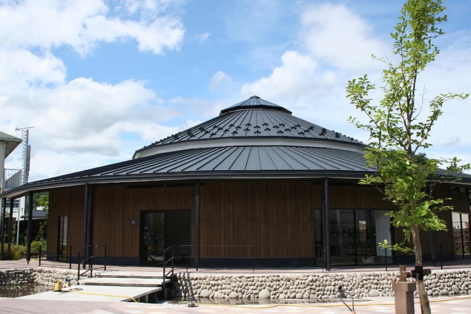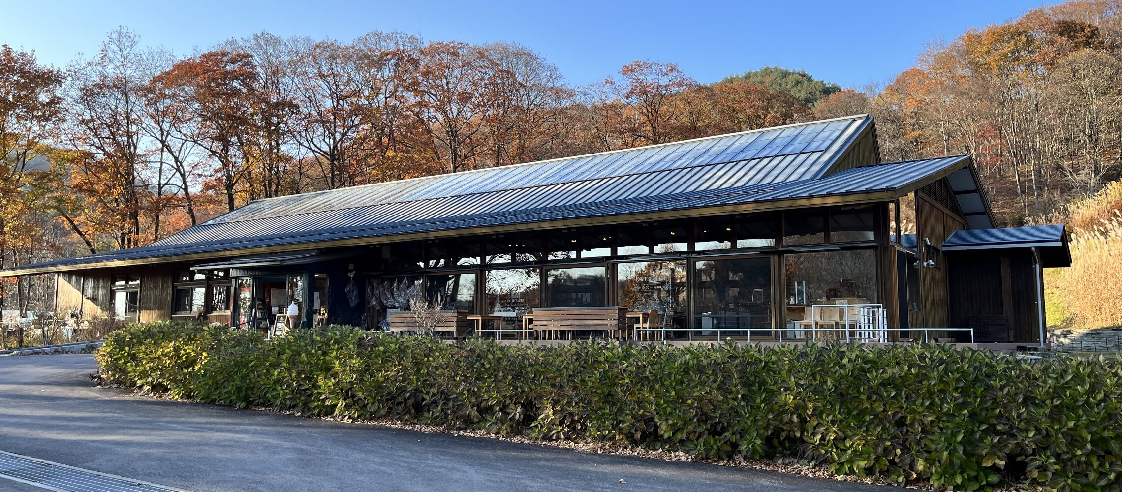 芝生広場を囲むように、オフィシャルショップやカフェなどが並ぶ複合施設です。「tsumujiショップ」では地元の工芸品や、クラフト作家の陶器やアクセサリーなどを販売しています。「tsumujiカフェ」では、地元の食材を使った食事やスイーツを用意。人気の「キーマカレー」のほか、地粉を使った「シフォンケーキ」やネルドリップでいれたコーヒーなどが味わえます。7店舗が軒を連ねる「横丁」で食べられる、季節のフルーツを使ったジェラートもおすすめです。